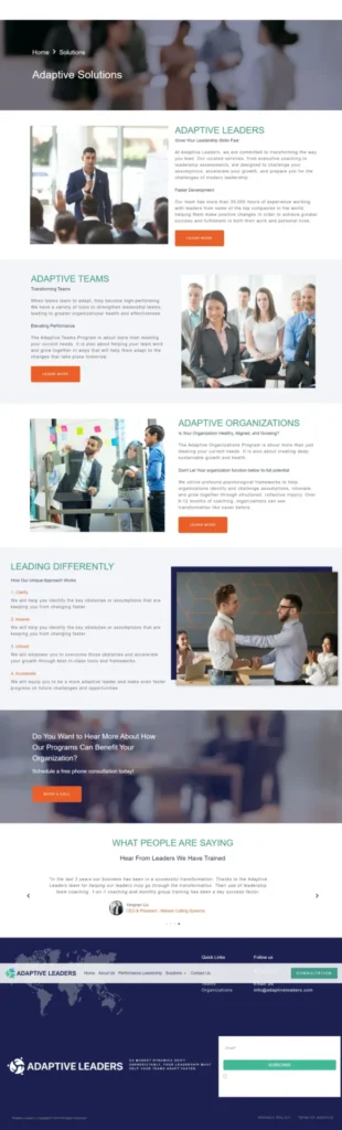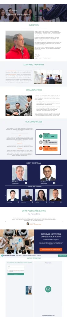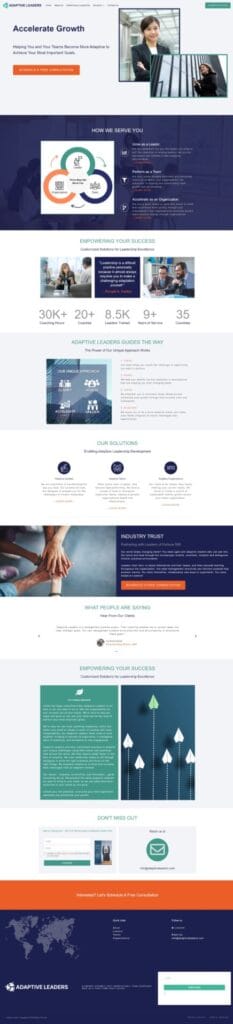 We designed and developed a user-friendly website for Adaptive Leaders, an organization dedicated to empowering leaders and teams globally. Their diverse team of coaches spans Asia Pacific, North America, and Europe. The website reflects their values of growth, trust, and collaboration, creating an engaging platform for their mission.