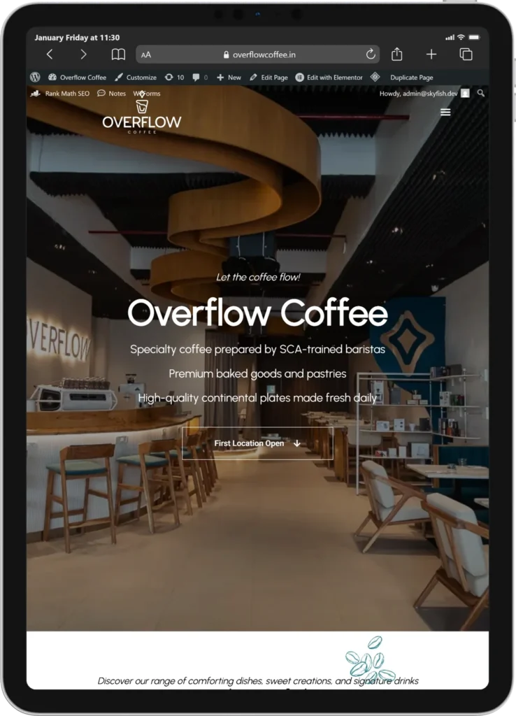 We designed and developed a modern, user-friendly website for Overflow Coffee, focused on showcasing the café’s brand story, community-driven ethos, and customer experience. The website was built with a responsive, performance-optimized design to ensure a seamless experience across all devices.The project included SEO implementation, Google Search Console setup, and analytics integration to improve visibility and search performance. We also connected a booking calendar with the client’s CRM, enabling streamlined customer bookings, automated follow-ups, and better relationship management—supporting both operational efficiency and long-term growth.