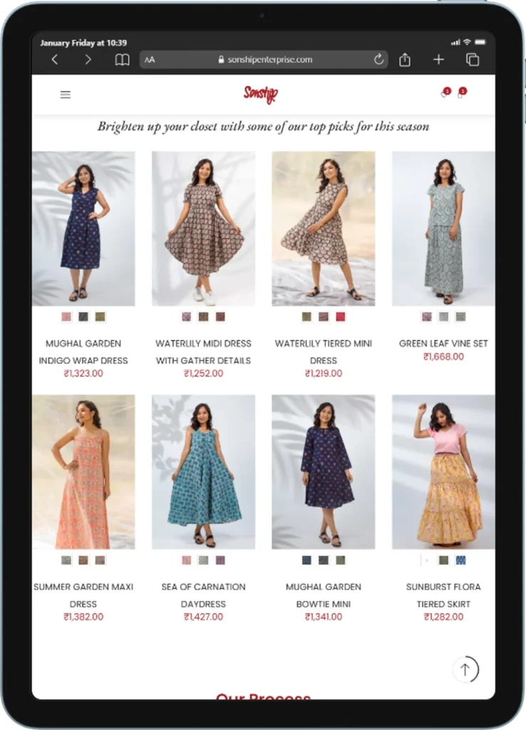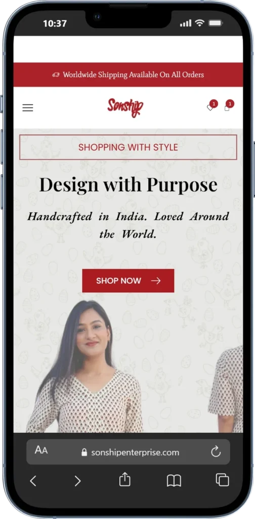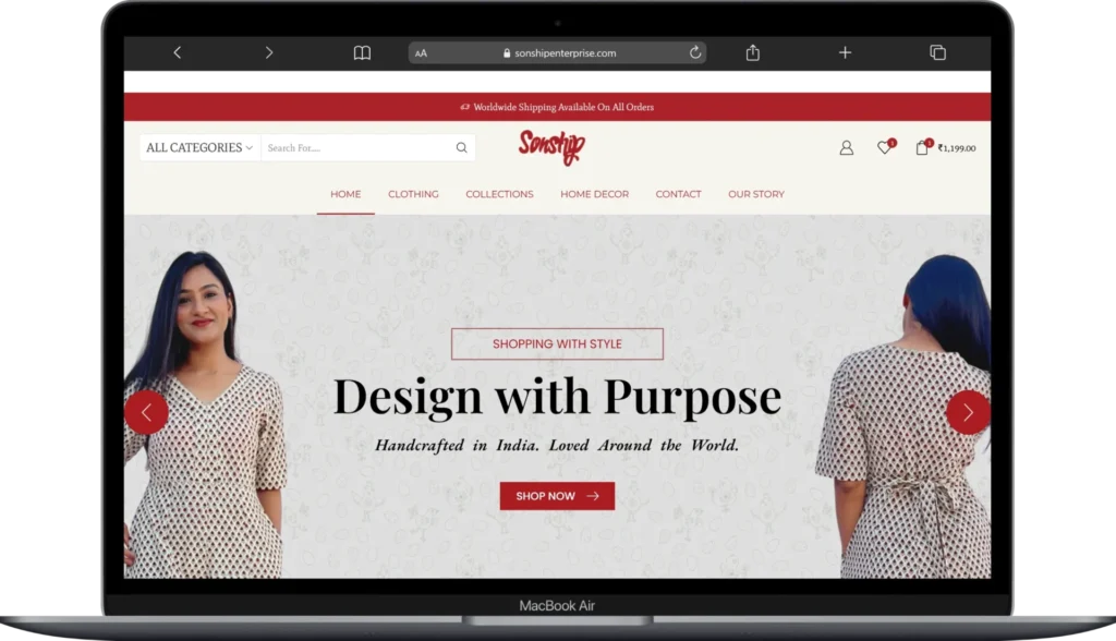 We had the privilege of designing and developing an eCommerce website for Sonship Enterprise, a purpose-driven brand rooted in Jaipur’s rich artisan heritage and committed to ethical production and community empowerment. With a strong focus on storytelling, mission, and craftsmanship, the website highlights their handcrafted clothing and home décor collections while communicating the brand’s social impact.From a clean, user-friendly, and fully responsive design to simple SEO implementation, Google Analytics integration, and Google indexing using Rank Math SEO, the project was built for performance and visibility. We also implemented speed optimization, multiple product variations, and seamless Delivery shipping integration—ensuring a smooth shopping experience that supports both scalability and the brand’s values.