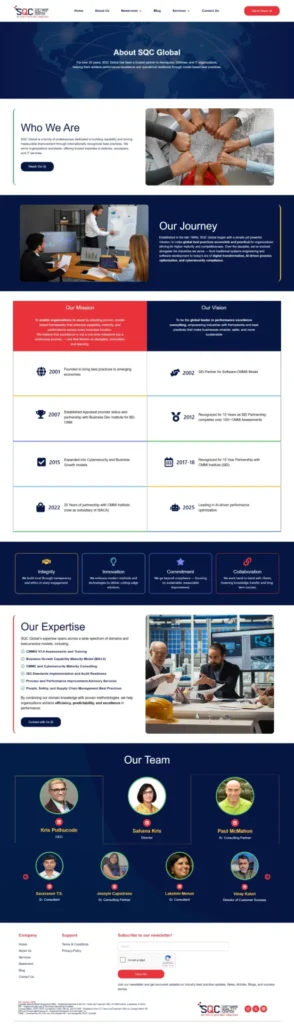 We partnered with SQC Global to design and develop a high-impact website that communicates their 25+ years of excellence in Defense, Aerospace, and mission-critical systems. The website highlights their CMMI-driven process modernization, cybersecurity compliance expertise (including CMMC and NIST 800-171), and business growth frameworks.Our work focused on a clear, authoritative content structure, responsive performance-optimized design, SEO setup with Rank Math, Google Analytics integration, search engine indexing, and speed optimization—ensuring a strong, compliant, and future-ready digital presence aligned with government and DoD standards.